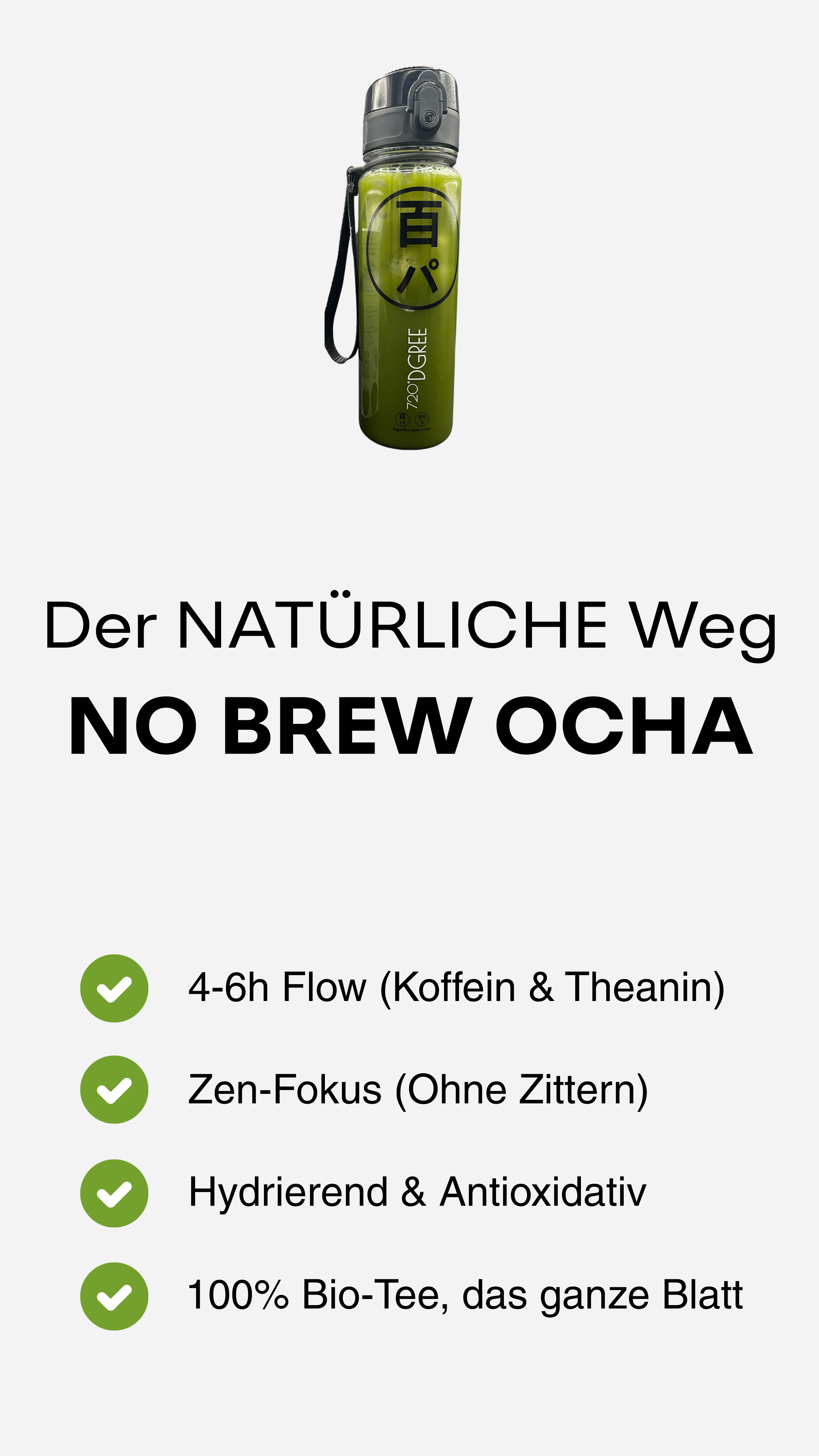 Durch die Verwendung des gesamten Blattes bietet HYAKU-PA NO BREW OCHA den maximalen gesundheitlichen und funktionellen Nutzen aller Komponenten des japanischen Grüntees und lässt sich gleichzeitig nahtlos in den Alltag wie Arbeit, Studium, Sport und Reisen integrieren.
