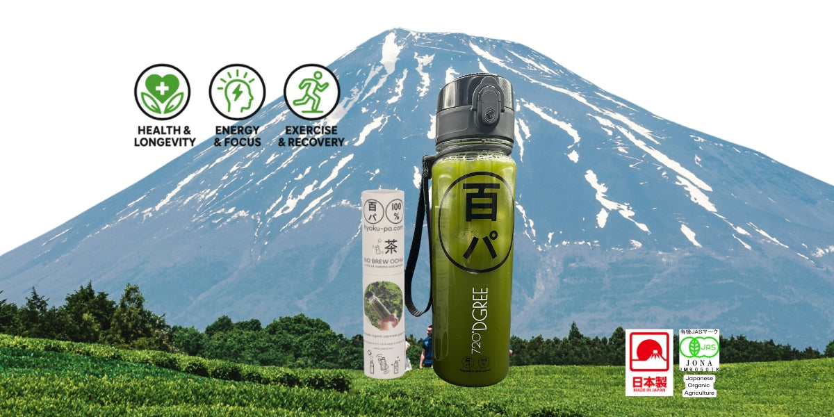 Using the entire leaf HYAKU-PA NO BREW OCHA provides the maximum health and functional benefits of all the components of Japanese green tea, while seamlessly integrating into daily routines such as work, study, sports, and travel.