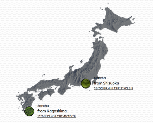 It is traceable to the field where the tea is grown. One in Shizuoka and one in Kagoshima.