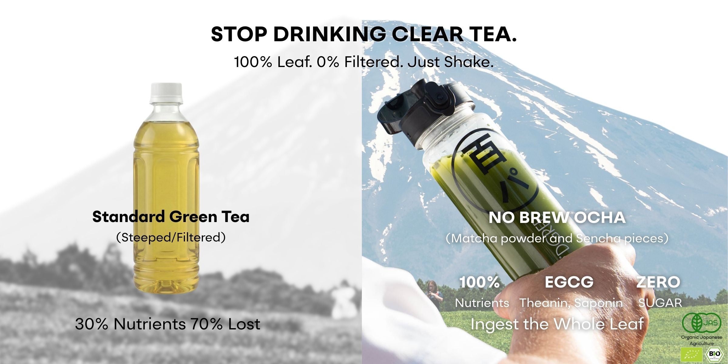 is a mix of single-origin high-grade organic Japanese green tea powder (matcha) and leaves (sencha) for convenient no-brew preparation. It combines the best of matcha and sencha and offers superior taste and health benefits. Consuming the entire tea leaf lets you appreciate 100% nature, nothing added.